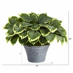 Budget π₯ Nearly Natural 23β Variegated Hosta Artificial Plant In Gray Planter π