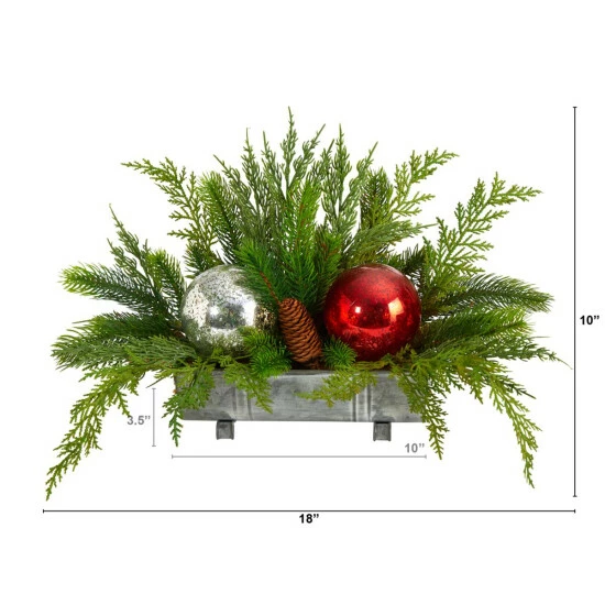 Nearly Natural 18″ Cedar Pine Artificial Table Arrangement with Christmas Ornaments