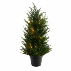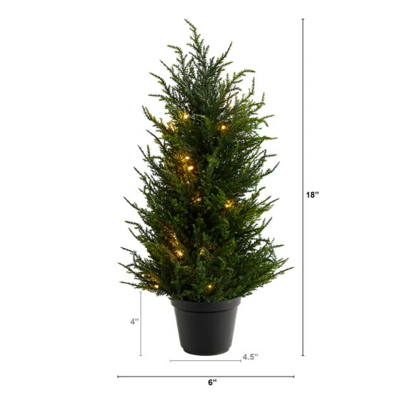 Nearly Natural 18 in. Cedar Artificial Tree with Lights UV Resistant