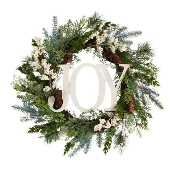 Nearly Natural 24β Christmas Joy Greenery Holiday Artificial Wreath