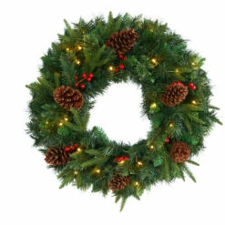 Cheap π Nearly Natural 24 In. Mixed Pine Artificial π Christmas Wreath With 35 Clear LED Lights And Berries π