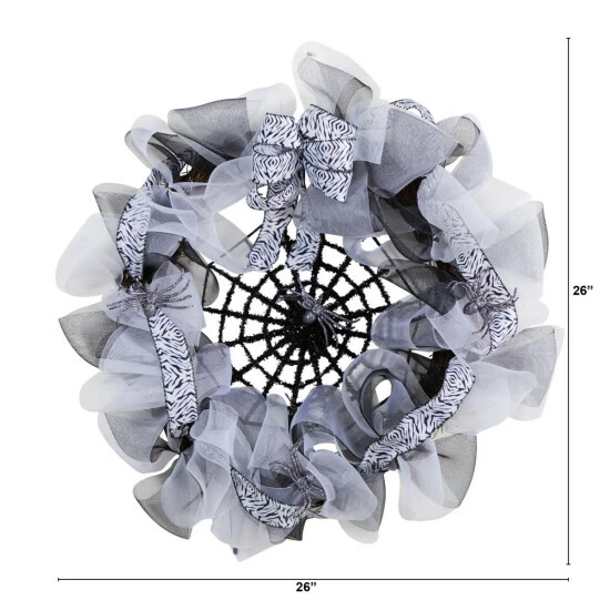 Nearly Natural 26 in. Halloween Spider Web Mesh Wreath