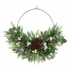 Want to feel nostalgic for Christmas? If you love Christmas but want a trendy alternative to the classical wreath, this half wreath is a better choice. Soft, hued evergreens are accented by pinecones and white berries. Crafted from high-quality materials, this faux wreath will last a while. With a diameter of 28″, house in a door or lonely wall. Hang close to the Christmas tree for a magical look.