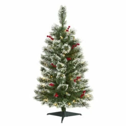 Nearly Natural 3 Ft. Frosted Swiss Pine Christmas Tree with 50 Lights