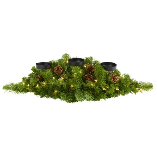 Set your home aglow this holiday season with the help of this artificial candelabrum specifically designed as an elaborate candle holder, itβs intricately designed from a rich overgrowth of realistic looking pine greenery, handsomely accented with miniature faux pinecones, all carefully surrounding a trio of candle holders. Better yet, this seasonal centerpiece comes already pre-strung with 35 clear lights, eliminating pre-tangled messes and holiday stress.