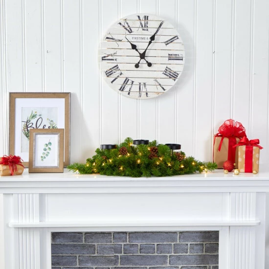 Nearly Natural 30-in. Christmas Pine Triple Candelabrum with Lights