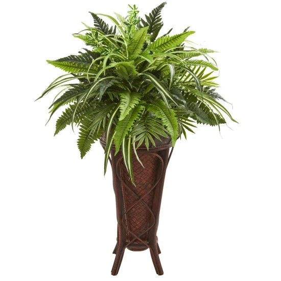 Nearly Natural32β Mixed Greens and Fern Artificial Plant in Decorative Stand