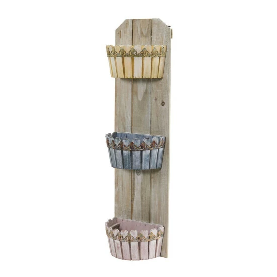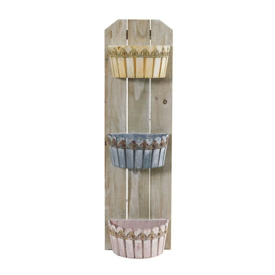 This wall shelf planter has a rustic appeal with its three baskets stacked vertically. Hang it next to the window above your kitchen sink and fill it with live green plants or faux lavender, lilacs and baby’s breath for a joyful look.