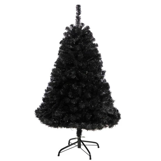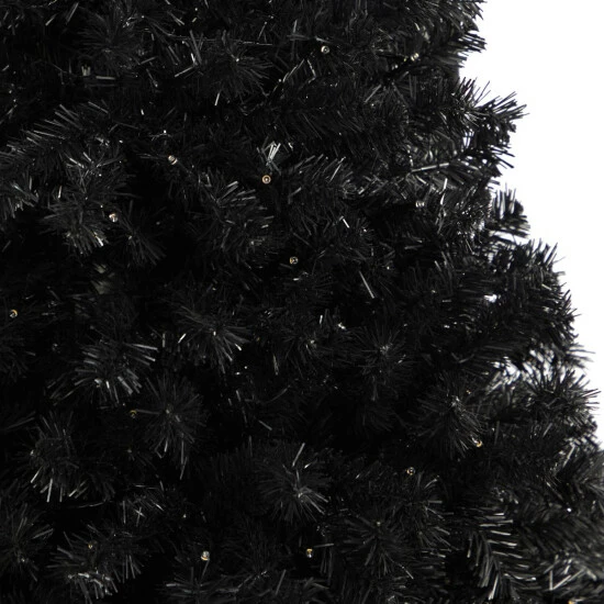 Crave a gothic Christmas or an upscale dazzling holiday season? Transform your Christmas into a unique event with this Black Artificial Christmas Tree. Inspired by nature, needles display a lush silhouette, dress this faux Christmas tree in an array of ornaments for a sleek look. Save time and money with the 170 LED lights, more energy-efficient. Standing 4′ add to any compact area. Why wait till Christmas? Display during Halloween, as well.