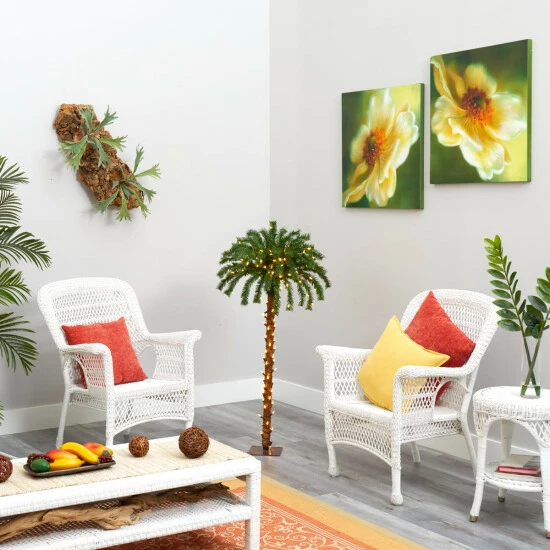 If youβre looking to implement a little fun into your holiday Christmas decor why not opt for this festive artificial Christmas Palm Tree. Intricately designed to mimic the beauty of a realistic palm tree, this tropical-inspired artificial Christmas tree features 54 realistic looking tips, illuminated throughout with 150 clear, pre-strung LED lights to eliminate unsightly tangles. Carefully stabilized on a wooden pole and metal base, this 4β artificial Christmas palm tree will undoubtedly create a unique Christmas atmosphere all season long. Materials:Iron Wire, PVC, Metal Dimensions:H: 4 Ft. W: 30 In. D: 30 In
