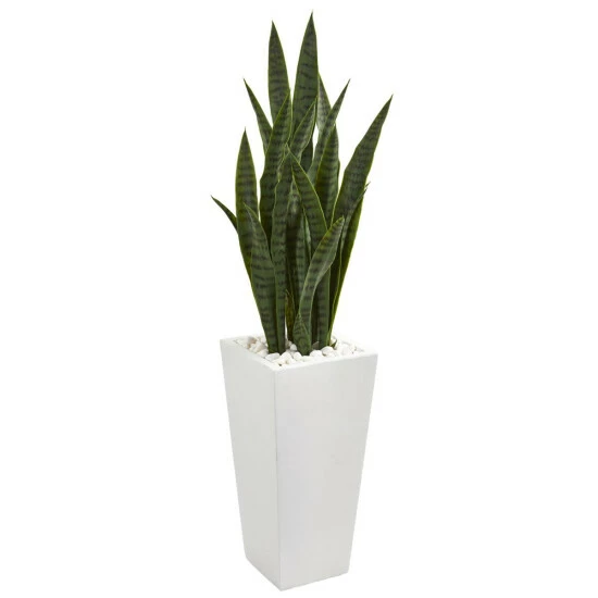 Nearly Natural 4′ Sansevieria Artificial Plant in White Tower Planter