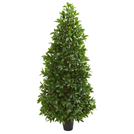The Nearly Natural artificialBay Leaf cone topiary treeβs green foliage is carefully placed to overlap, leaving no space between the leaves to be seen. With its height of 5-feet, this tree can be used to accentuate the furniture pieces in your living room. Place it beside your mantelpiece, entertainment system, or even between two chairs to give your arrangement a beautiful focal point. Its UV-resistant leaves ensure you can use it inside or outside.