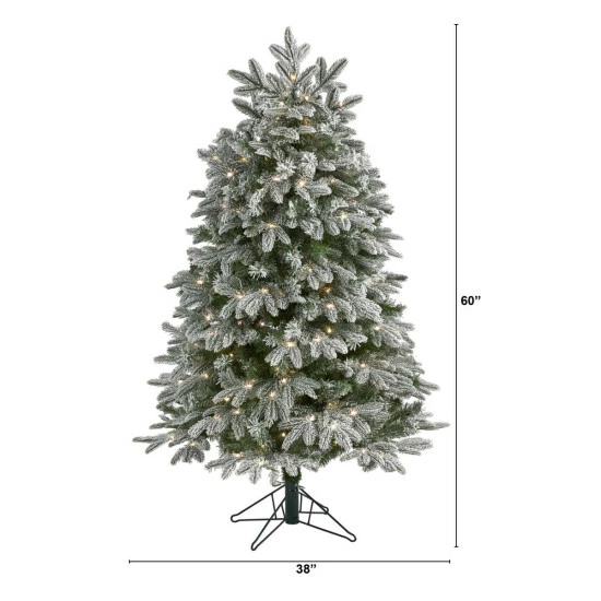 Nearly Natural 5 Ft. Flocked Christmas Tree with 300 LED Lights
