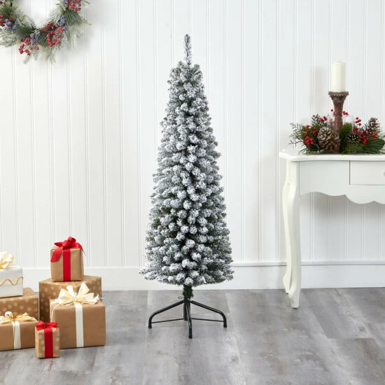 Nearly Natural 5 Ft. Flocked Pencil Artificial Christmas Tree
