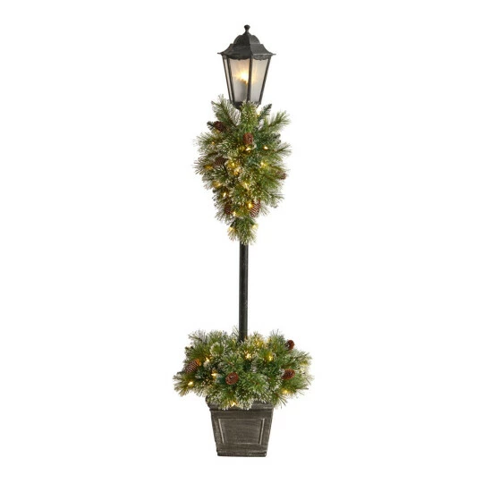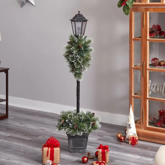 Nearly Natural 5 Ft. Pre-lit Decorated Lamp Post with 50 LED Lights