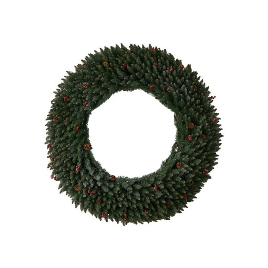 Add the WOW factor to your holiday dΓ©cor with this flocked artificial Christmas wreath, intricately designed from realistic looking pine foliage in a palette of seasonal evergreens, flocked in a coat of faux-snow, carefully accented throughout with faux pinecones and berries. Arriving pre-strung with 400 clear LED lights this 5β in diameter decorative wreath makes for an inviting holiday accent.