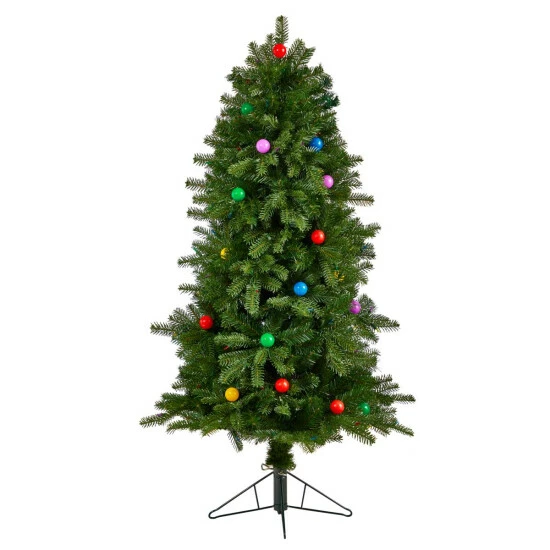 Light up your home this holiday season with the help of this artificial Christmas tree. Easy to build and entirely maintenance-free, it boasts a traditional silhouette of seasonal evergreens made up of 574 easy-to-bend branches. Perfect for showcasing all your favorite holiday ornaments. Arriving pre-strung with 300 multicolored LED lights, 30 globe lights and carefully stabilized on a metal stand, this festive 5β tall artificial Christmas tree will undoubtedly be a focal point throughout the holidays, year after year. The globe lights deliver a little holiday color wherever displayed.