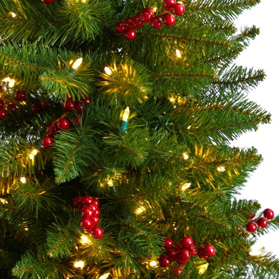Create a traditional Christmas scene in your home or office with the help of this Artificial Christmas Tree! Completely maintenance-free, this realistic looking fake Christmas tree boasts a rich collection of evergreen foliage, including 426 bendable branches accented by faux berries, perfect for adding your own personalized ornaments and holiday accents. Arriving pre-strung with 200 LED lights to eliminate tangles and carefully stabilized on a metal stand, this 5β tall artificial Christmas tree will not only make decorating a breeze but ensure your home is always seasonally attired for years to come.