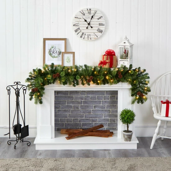 Complete your holiday decor scheme this Christmas with the help of this artificial winter garland, intricately designed from realistic looking seasonal evergreens, accented throughout with faux pinecones that look incredibly lifelike. Arriving pre-strung with 50 multi-colored LED lights (battery operated) to add a soft, holiday glow to vertical surfaces, this 6β long artificial garland will undoubtedly complete a traditional holiday setting for years to come.