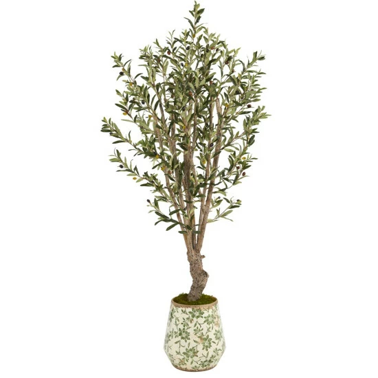 Nearly Natural 62″ Artificial Olive Treein Floral Print Planter