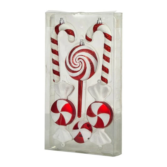 Make your Christmas tree a little sweeter with this Christmas candy-inspired ornament set of 6. Fill any bare corner and create a focal point wherever displayed. Easily brighten any corner of your Christmas tree.