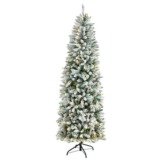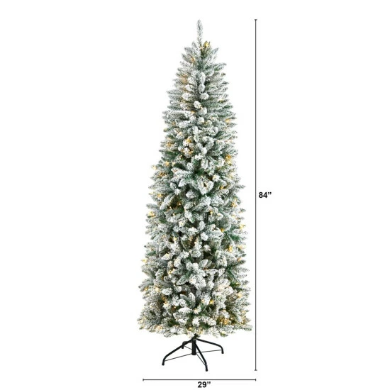 Nearly Natural 7β Slim Flocked Montreal Fir Christmas Tree with 300 Lights