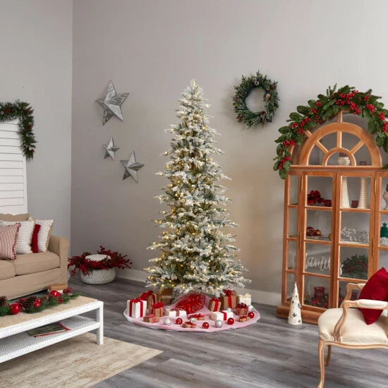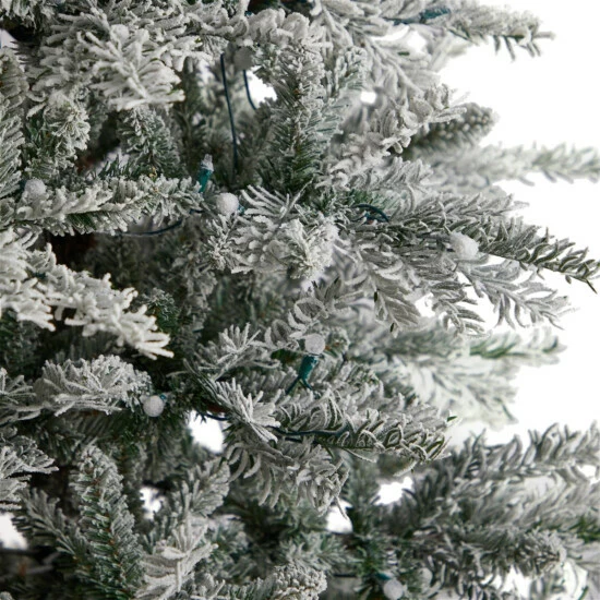 Nearly Natural 8.5 Ft. Slim Flocked Spruce Tree with 500 LED Lights