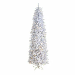 Nearly Natural 8β Slim White Christmas Tree with 400 Lights