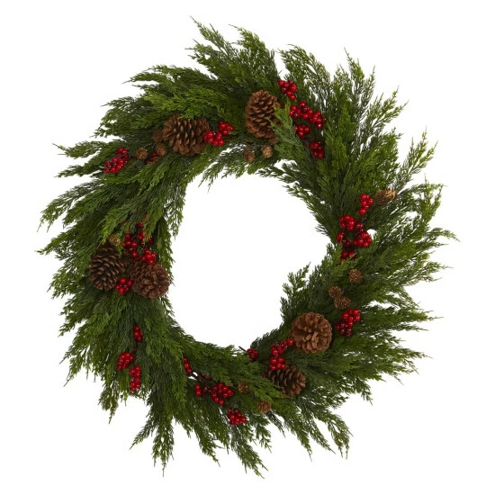 Nearly Natural Cypress with Berries and Pine Cones Artificial Wreath