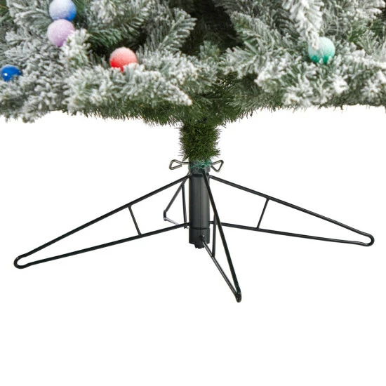 Bring the Canadian forest’s rustic charm home with the help of this Flocked British Columbia Mountain Fir Artificial Tree. This realistic tree is flocked, recreating a winter wonderland setting. The easy-to-bend branches allow you to shape and fluff as you like while the multi color globe bulbs add a fun colorful touch – saving you time and money. Standing from a metal stand, pair in an area with high ceilings.
