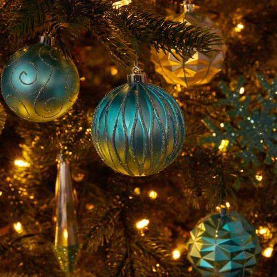 Get into the holly jolly spirit this holiday season with an easy, go-to set of shatterproof Christmas tree ornaments. Perfect for accenting and filling in bare spaces in Christmas trees, this set of 52 (80mm – 150mm) holiday-inspired ornaments comes in bright hues and seasonal motifs, each reflecting a glass-like quality – without the fear of damage should they fall or drop. Arriving in a reusable tray for safe-keeping and storage, theyβre perfect for mixing and matching with other similar colors and themes. Materials:PS – Polystyrene Dimensions: H: 3-6 In. W: 3-6 In. D: 3-6 In.