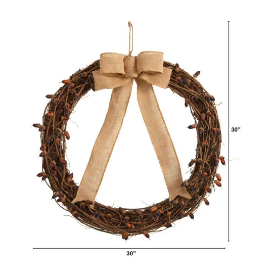 Nearly Natura 30β Fall Acorn and Decorative Bow Autumn Wreath